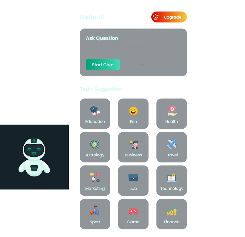 Introducing Hello AI, a cutting-edge solution revolutionising information retrieval and content creation. Tailored for a seamless user experience, this application utilizes advanced artificial intelligence to not only answer your questions with remarkable accuracy but also generate relevant images and craft comprehensive written content. Whether you're a student looking for quick research assistance, a professional in need of content creation support, or anyone seeking instant and reliable information, Hello AI is your go-to companion.